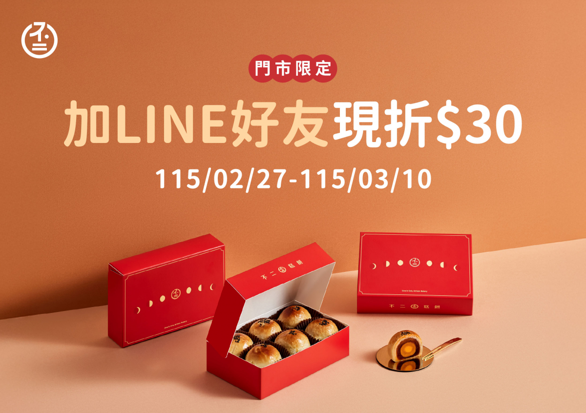 5. 台中門店限定$30購物金,僅限於台中門店現場消費使用,不適用於快閃櫃、不二糕餅購物官網及電話預訂。